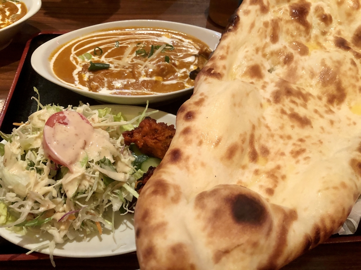 上の写真はプレーンナンですが、チーズナンやカシミリーナン(カシューナッツとハチミツトッピング)あたりを注文しようものなら、ちょっとしたフードファイト状態になってしまいます。